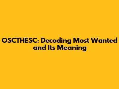 OSCTHESC: Decoding 'Most Wanted' And Its Meaning
